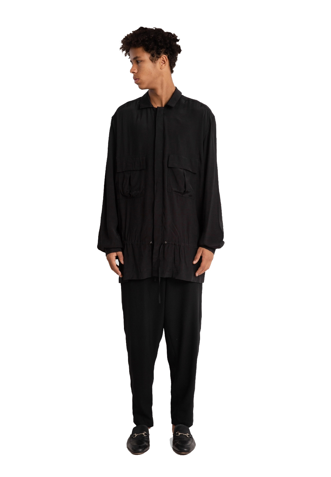 Drawstrings Pocket Shirt (Black)