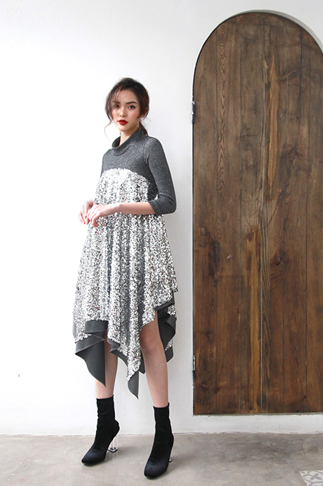 Material: Cotton, Lycra, Sequin, Silk