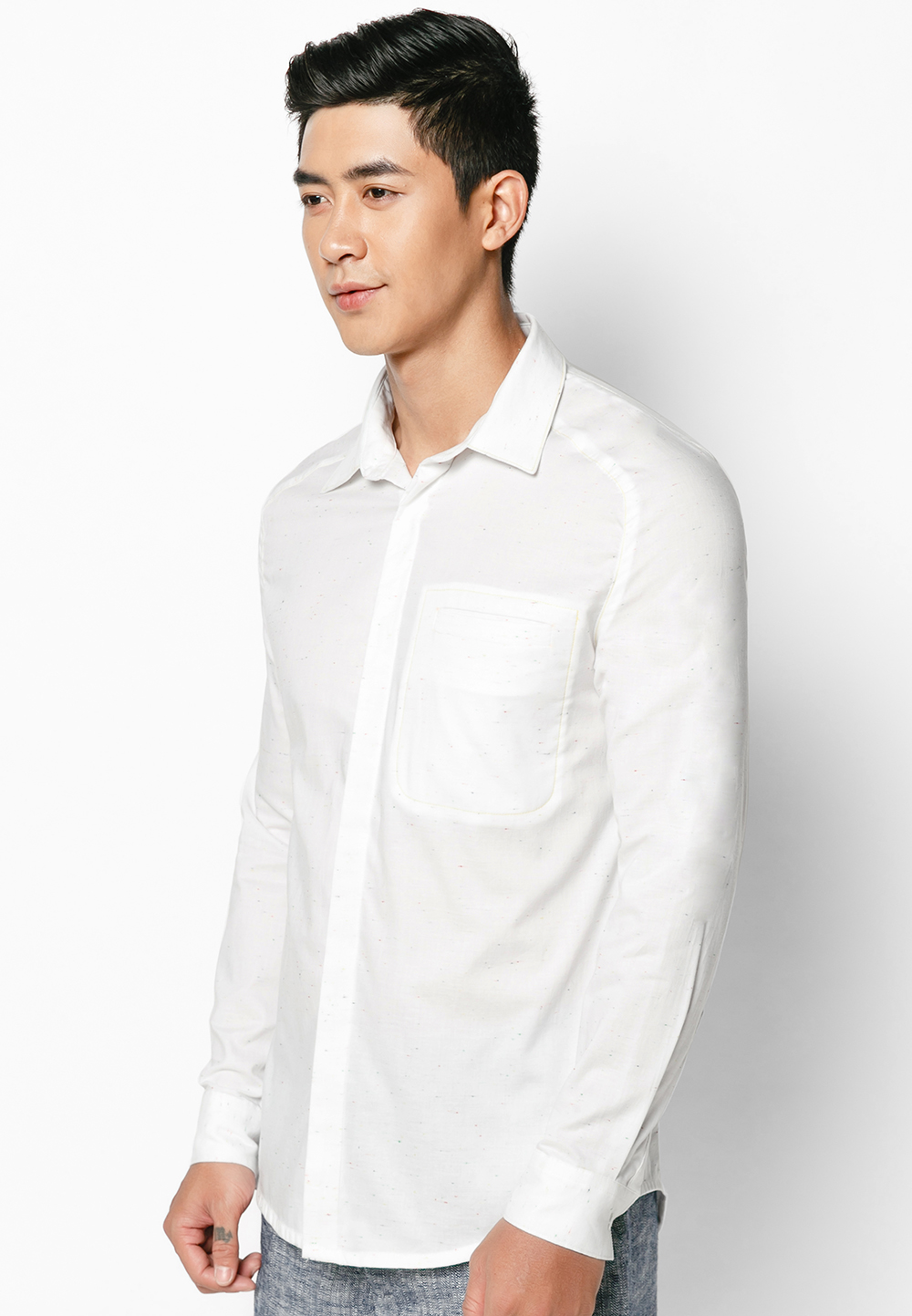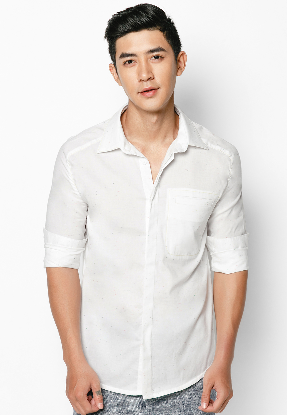 Pleated Button White Shirt